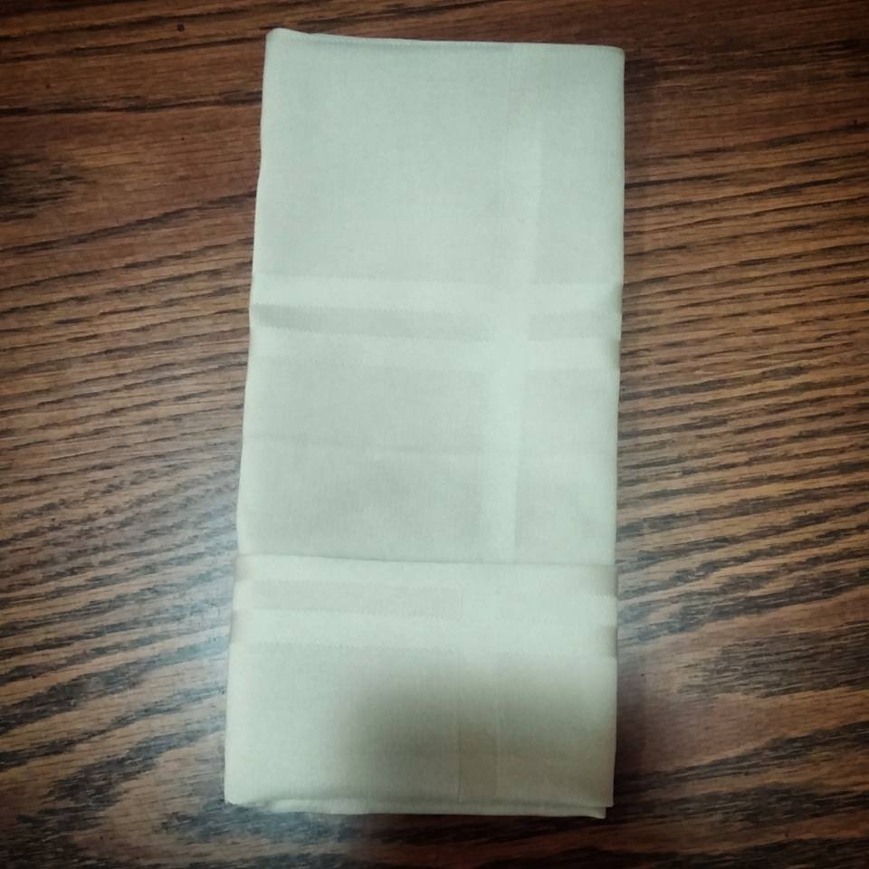 Begin to fold your napkin as you would a bath towel. Over and over onto itself. Do you best to have the folds line up so that there is no extra fabric left over at the end. If there is however, simply tuck it into the last fold so it doesn't show.